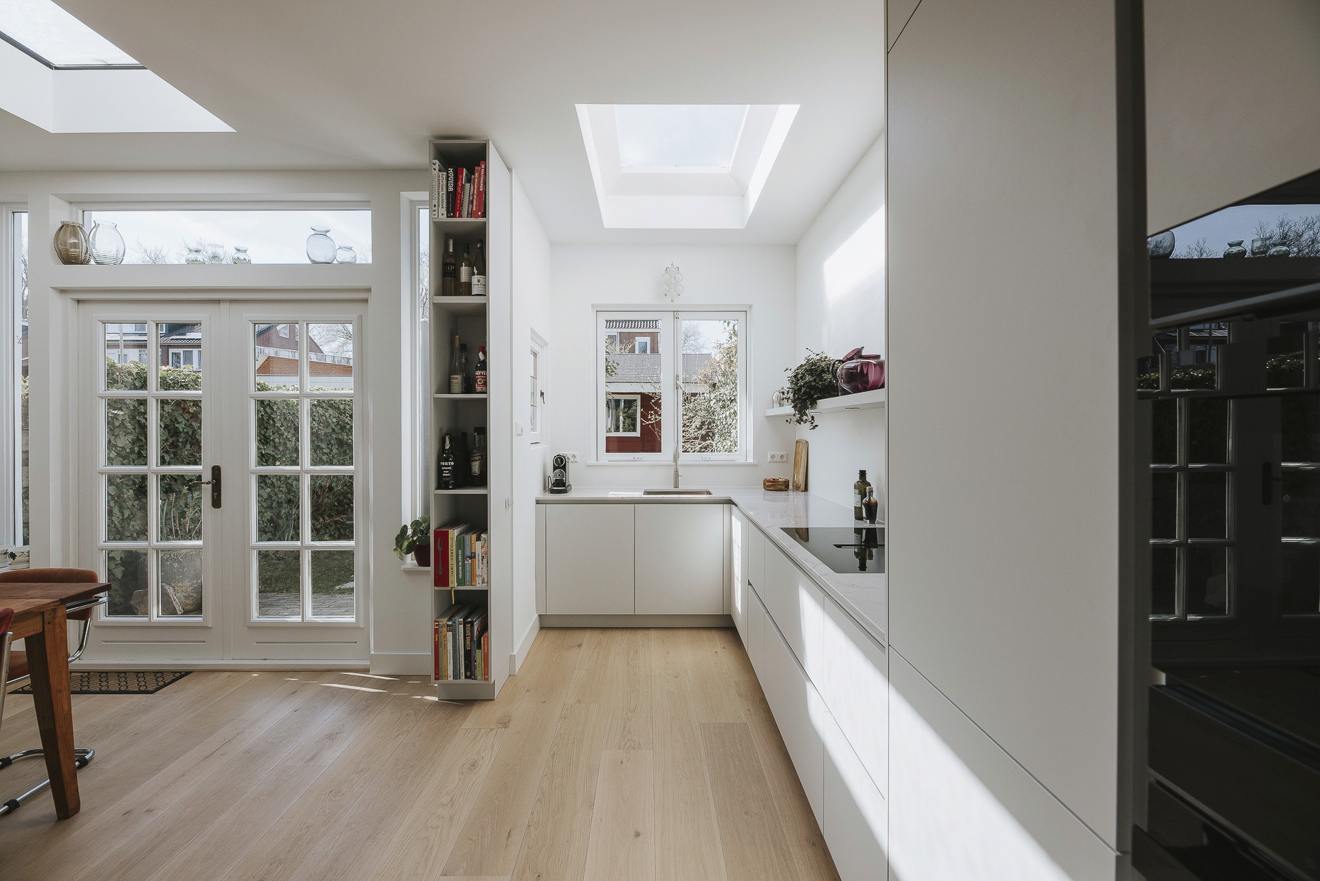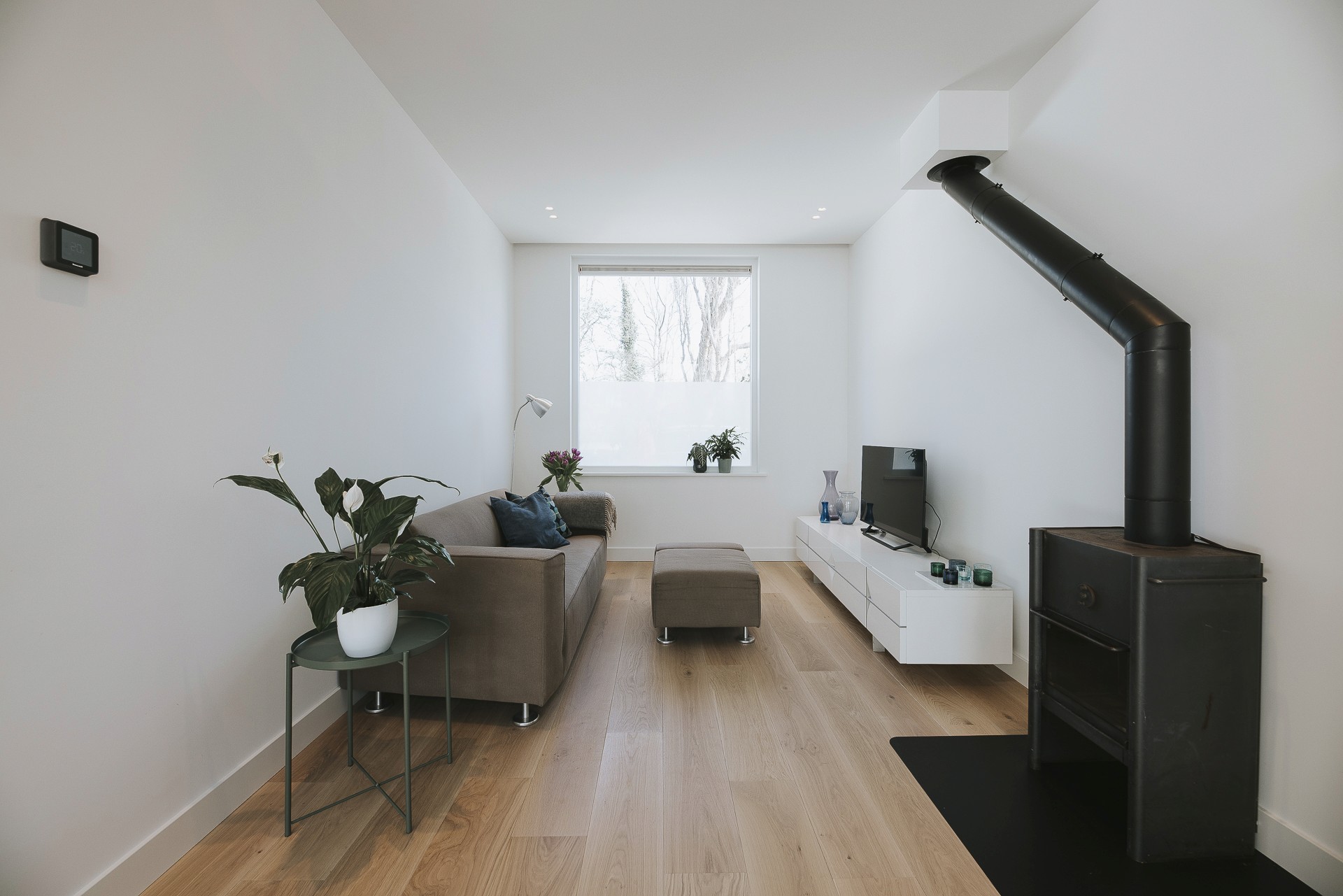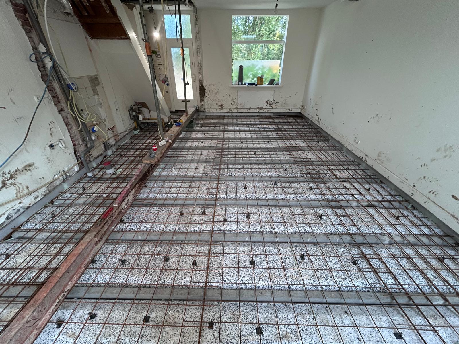 Huis van 100 jaar oud wat gefundeerd ‘op staal’ is. Dat wil zeggen dat er geen palen onder het huis staan. Door vocht waren de vloerbalken doorgerot en dus ingestort. We hebben de volledige bg moeten slopen en uit moeten graven omdat we de balkenlaag hebben vervangen door een systeemvloer. Doordat een systeemvloer een vrij zware oplossing is voor een huis zonder palen, hebben we een kelderbak gemaakt zodat deze kan dragen over het gehele grond oppeervlakte ipv alleen op de bestaande muren. De systeemvloer ook wel renovatievloer genoemd, heeft een hoge isolatie waarde en geeft dus een lekker comford icm met vloerverwarming. We hebben hier een kruipkelder gerealiseerd, een systeemvloer in gemaakt, vloerverwarming aangelegd, de indeling veranderd en alles vernieuwd. Voozetwanden met isolatie, plafond met isolatie, elektra vernieuwd, waterleidingen vanaf de watermeter vernieuwd en het riool is volledig vervangen. Alles is op hoog niveau afgewerkt en volledig vernieuwd.